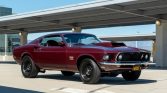 This 1969 Ford Mustang Sportsroof began life as a 302-powered automatic transmission car that was originally delivered to Litaker Ford of Catonsville, Missouri. It was refurbished and modified as a Boss 429 tribute under previous ownership before it was acquired by the seller in 2019. The car is finished in burgundy over black vinyl upholstery, and power comes from a Ford big-block V8 of unknown displacement paired with a four-speed Toploader manual transmission. Additional modifications include a fiberglass hood scoop, an Edelbrock RPM intake manifold, a Holley 800-cfm carburetor, a PerTronix billet distributor, a Griffin aluminum radiator, Bilstein shocks, Lakewood traction bars, Thrush stainless steel mufflers, a Hurst shifter, and a 9″ rear end with a 3.50:1 Traction-Lok differential.