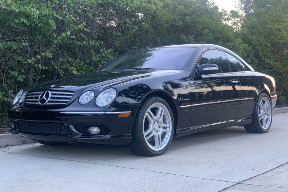This 2005 Mercedes-Benz CL65 AMG is finished in black over Exclusive Graphite leather and powered by a twin-turbocharged 6.0-liter V12 paired with a five-speed automatic transmission. Factory equipment includes the AMG styling package, Active Body Control suspension, heated and ventilated multi-contour seats, burred walnut interior trim, Keyless-Go, and COMAND with navigation.