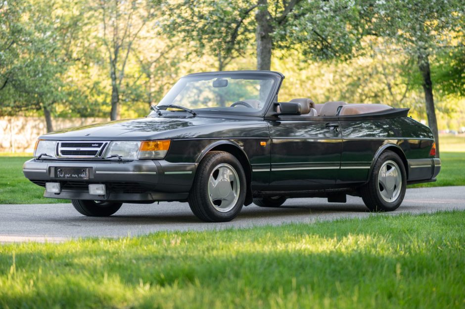 This 1994 Saab 900 Turbo convertible is number 461 of 500 Commemorative Editions built to celebrate the end of classic 900 production. The car finished in metallic black over tan leather is powered by a turbocharged 2.0-liter “red box” inline-four paired with a five-speed manual transaxle. Equipment includes anti-lock brakes, a power convertible top, air conditioning, power aLessories, cruise control, a CD player, and walnut veneer interior trim.