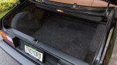 The cabin features bucket seating trimmed in tan leather with black piping, matching carpets, black Saab-branded floor mats, a leather shift boot, and wood veneer aLenting the dash. Amenities include power-adjustable front seats, power aLessories, air conditioning, and a Clarion cassette stereo with equalizer and a Saab CD player that does not work.