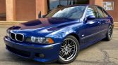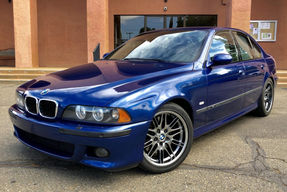 This 2001 BMW M5 is finished in Le Mans Blue Metallic over black and blue leather and is powered by a 4.9-liter S62 V8 paired with a six-speed manual transmission and a limited-slip differential. Equipment includes fog lights, xenon headlights, a sunroof, sun shades, heated front seats, a navigation system, and automatic climate control. Service performed in preparation for the sale has included rebuilding the engine and the differential as well as replacing the flywheel, clutch, suspension bushings, brake pads, and brake rotors.