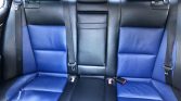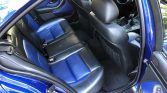 The cabin features black leather seating surfaces with Le Mans Blue inserts along with an Anthracite Alcantara headliner, and brushed aluminum trim on the dashboard, center console, and door panels. Amenities include a navigation system, heated front seats, rear sunshades, a CD changer, and automatic climate control.