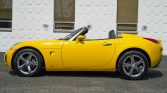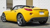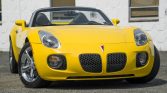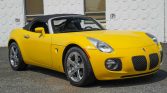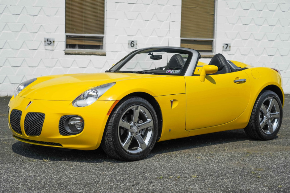 This 2007 Pontiac Solstice GXP is finished in yellow with a black convertible top over black leather and powered by a turbocharged 2.0-liter inline-four paired with a five-speed manual transmission. Equipment includes a limited-slip differential, 18″ polished aluminum wheels, cruise control, air conditioning, and a factory CD stereo.