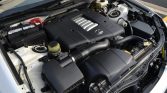 Power is sent to the rear wheels through a five-speed automatic transmission. The factory rear mufflers have been removed and Magnaflow axle-back pipes with polished tips have been added in their place.