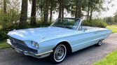 This 1966 Ford Thunderbird was ordered new via Taiwan Motor Company Ltd. by a US Army major who was stationed in Asia at the time. The car was assembled in the Wixom, Michigan plant on September 14, 1965 before being delivered to Lucas Motor Sales of Burlington, New Jersey, where the major took delivery of the car upon his stateside return. Work by the second owner in 2008 consisted of stripping the exterior and refinishing the car in its factory-delivered Arcadian Blue, while the white and blue interior was redone. Power comes from a 428ci Q-code V8 paired with a three-speed C6 automatic transmission, and additional equipment includes a powered white convertible top, hubcaps, an AM/FM stereo, and R134a air conditioning. The current owner acquired the car in 2014.