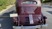 The Fleetwood body is mounted on a 138″ wheelbase and features a detachable soft top over the driver’s compartment. The car was refinished in its current burgundy paint with a matching roof cover during a refurbishment that was reportedly carried out 20 years ago. Exterior details include rear coach doors, a body-colored luggage rack, a Flying Lady hood ornament, driving lights mounted over the front bumper, running boards, and dual sideview mirrors.