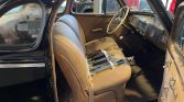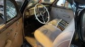 Finished from the factory in Rembrandt Black (515), the car is said to have undergone rust repair on the rear fenders and was partially repainted apart from the front fenders during current ownership. Yellow-tinted driving lights have been installed and brightwork includes a chrome grille, side vents, dual side mirrors, and bumpers with overriders. Close-up photos of the trim are provided in the gallery.