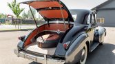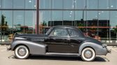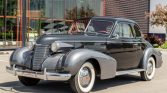 This 1939 Cadillac Series 61 is a Fisher-bodied coupe finished in metallic black and gray over a customized interior with saddle and brown leather upholstery. Power is provided by a 346ci L-head V8 mated to a three-speed manual transmission, and features include a single Stromberg carburetor, independent front suspension, 16″ steel wheels with wide-whitewall tires, and four-wheel hydraulic drum brakes. Braking and suspension components were refurbished in June 2014 along with repair of the temperature gauge, fuel…