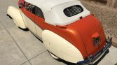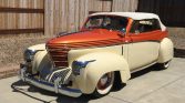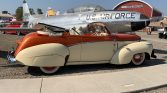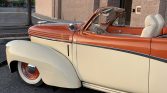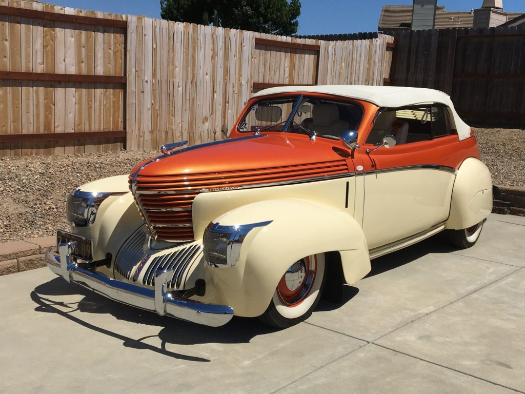 This 1939 Graham “Sharknose” convertible is a refurbished and modified example powered by a 302ci V8 paired with an AOD four-speed automatic transmission and a narrowed Ford 9-inch rear axle. The car is finished in ivory and orange over a matching interior and features include Vintage Air climate control, Mustang II type front suspension, electronic ignition, a four-barrel carburetor, an aluminum radiator with an electric fan, power windows, electronic opening doors, Honda-sourced front seats with shoulder belts, a VW Beetle-sourced convertible top and quarter windows, a 1950s Chevrolet trim pieces, modified hood ornament, and a Pioneer CD stereo.