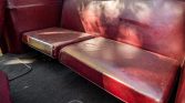 This 1941 Plymouth P12 Special Deluxe convertible is finished in burgundy over a dark red interior and is powered by a 201ci inline-six paired with a column-shifted three-speed manual transmission with overdrive. Features include a front disc brake conversion along with a tan convertible soft top, an AM radio, chrome trim, rear-wheel skirts, fog lamps, running boards, bumper guards, and dual exhaust outlets.