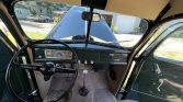 The body has been refinished in dark green with a wood slat bed floor and chrome bumpers. There are paint bubbles on the right front fender and running boards. A custom gas cap and lid were installed in addition to a replacement windshield wiper assembly that does not utilize a vacuum-style operation system.