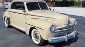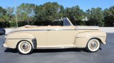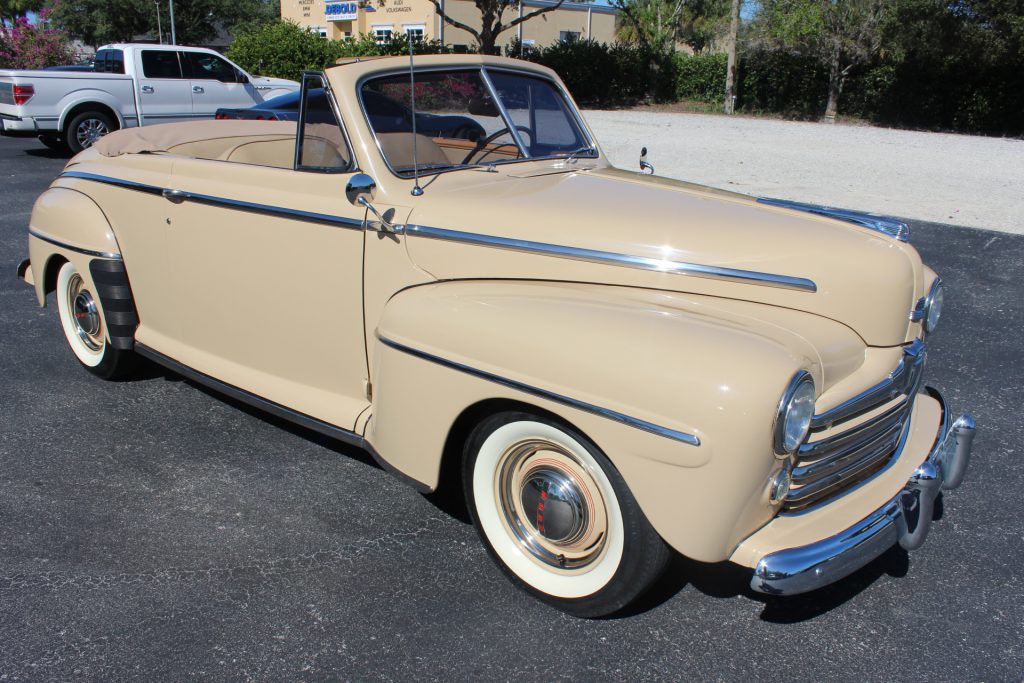 This 1947 Ford Super Deluxe convertible was refurbished in the late 1990s and was purchased by the current owner in June 2020. It is finished in cream over a two-tone tan interior, and power is provided by a 239ci flathead V8 paired with a three-speed manual transmission. Equipment includes a tan convertible top, air conditioning, an Alpine stereo, and a stainless steel exhaust system.