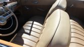 The car was repainted cream during the refurbishment and features a power-retractable tan convertible top in addition to front and rear chrome bumpers with overriders. Additional exterior details include dual side mirrors, parking lights, and a chrome grille, headlight surrounds, and horizontal side trim.