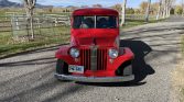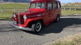 The Brooks Stevens-penned body was refinished during prior ownership in red. Additional features include chrome bumpers, dual mirrors, sliding rear side windows, and a split tailgate.