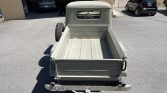 The pickup bed and hood were straightened and the body was repainted in gray during the refurbishment commissioned by the seller between 1999 and 2002. Additional work included the installation of refurbished windshield wiper arms as well as the replacement of the fender well piping, rear bumper, side mirror glass, signal lenses, and windshield and seals. Exterior equipment includes a chrome front bumper, a body-color front grille, and dual taillights.