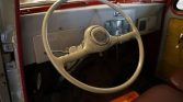 Red-finished 16″ steel wheels wear Specialty Tires of America 7.00-16LT tires, and a matching spare is mounted to the driver’s bedside. The front wheel hubs were reportedly rebuilt during the refurbishment, and the brakes were bled in 2018.