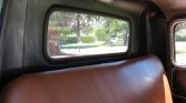 The interior features a bench seat upholstered in brown vinyl with black door panels and a black and silver dashboard. Features include manual windows, a Chevrolet AM radio, a Harrison heater box, and lap belts. The seller notes that the seats have been reupholstered, the weatherstripping replaced, and the heater rebuilt.