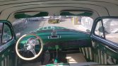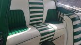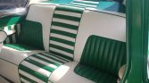 The interior was reportedly redone in the late 1950s by Bennie Stohr of Bilt-Rite Auto Upholstery in St. Paul, Minnesota and features dual benches upholstered in green and white upholstery with matching treatments for the doors and trim panels. Additional features include a three-spoke steering wheel, a floor-mounted shifter with a dice-style knob, and a Moon gas pedal.