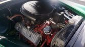 The car retains a factory 110-mph speedometer, which is surrounded by an ammeter and fuel level, coolant temperature, and oil-pressure gauges. An analog clock is mounted atop the dashboard, and a Radson Engineering tachometer is fitted below. Just over 15k miles are shown on the odometer.