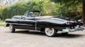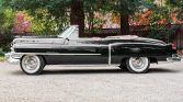 The Series 62 was restyled for the 1950 model year and featured a single-piece curved windshield, revised rear panel styling, additional chrome trim, and a larger front grille compared to the 1949 model. This example is one of 6,986 convertibles produced for the model year. Features include an antenna, a driver-side mirror, and a fuel filler cap mounted behind the left taillight. The tan soft top was reportedly installed under the seller’s ownership along with a matching top boot.