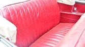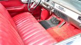 The cabin features front and rear bench seats trimmed in red upholstery along with matching door panels and carpets as well as a two-tone painted steel dash. Features include power windows, a heater, an AM radio, a clock, and black floor mats.