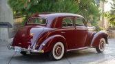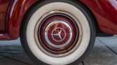 The 15″ steel wheels are painted to match the body and are mounted with wide whitewall tires. The W187 was equipped with independent front suspension, four-wheel drum brakes, and recirculating ball steering.
