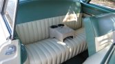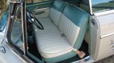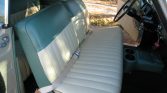The twin bench seats were refoamed and reupholstered in Ivory and Turquoise vinyl to match the exterior. Equipment consists of removable center consoles with cupholders along with cream-colored front lap belts and gray loop-weave carpeting, both of which were reportedly replaced under current ownership.