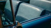 The car was delivered new in two-tone India Ivory and Coral, and it was overhauled following fire damage under previous ownership. The body is said to have been placed on a rotisserie and taken down to bare metal. The rear quarter panels were damaged in the fire and were replaced before the car was refinished in two-tone blue and white with a white soft top.