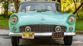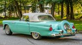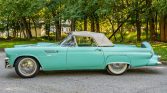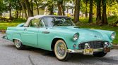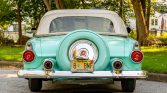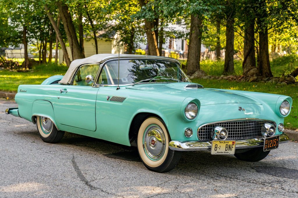 This 1955 Ford Thunderbird was purchased by the seller’s father in 1966 and is finished in Thunderbird Blue over turquoise and white vinyl upholstery. Power is provided by a 292ci V8 paired with a three-speed automatic transmission, and equipment includes a body-color hardtop and continental kit, a white soft top, and power steering. The carburetor was rebuilt and the battery and generator were replaced in 2021.