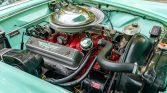 The 292ci Y-block V8 features finned valve covers and was factory rated at 198 horsepower and 286 lb-ft of torque. The four-barrel carburetor was rebuilt, the battery and generator were replaced, and a battery cutoff switch was installed in 2021. A Weiand tri-power intake manifold is included in the sale. An auxiliary electric fuel pump has been added to aid in starting the car.