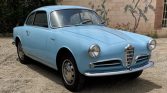 This 1956 Alfa Romeo Giulietta Sprint is a first-series example that was built on January 31, 1956, and was distributed in the US through Hoffman Motor Car Co. in New York. It was acquired by the seller’s father in 2013 and subsequently refurbished from 2015 to 2019 by Alfa Italia of Burbank, California. Work included an exterior repaint, interior refresh, engine rebuild, and a brake system overhaul. The car is finished in light blue over a two-tone…
