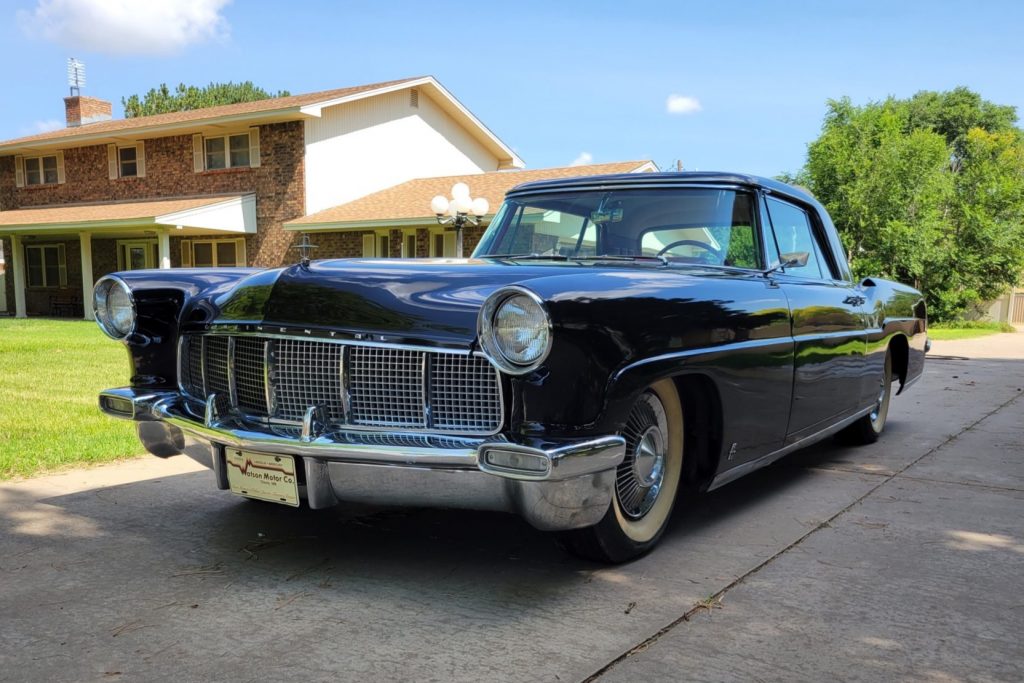 This 1956 Continental Mark II is said to have spent its life in New Mexico, where it was acquired by the seller’s late father through their family dealership in 1992. The car is finished in black over a cream and red interior, and power is from a 6.0-liter V8 paired with a three-speed automatic transmission. Features include air conditioning, a hidden fuel filler, a power-adjustable front bench seat, power accessories, and steel wheels with turbine-style covers.
