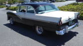 Originally finished in Raven Black, the car reportedly was refinished in its current shade of black and white in 2006. Trim includes bright side moldings, window surrounds, mirrors, and bumpers as well as Fairlane, Club Sedan, and Ford badging.