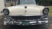 This 1956 Ford Fairlane Club Sedan is finished in black and white over a two-tone gray interior, and it is powered by an overbored 292ci V8 mated to a Borg-Warner five-speed manual transmission and a 3.25:1-geared rear axle. Modifications include American Racing Torq Thrust wheels, power brakes, power steering, a Hurst shifter, reupholstered front and rear bench seats, a Pioneer CD stereo with Clarion speakers, AutoMeter and Sunpro gauges, and a leather-wrapped Ididit steering wheel. The seller…