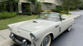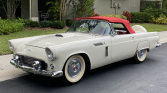 This 1956 Ford Thunderbird was delivered new to J.W. Burch and Son of La Habra, California and spent time in Michigan before being acquired by the seller in Florida in 2018. The car is finished in white over a red and white interior and powered by a 292ci V8 paired with a three-speed manual transmission. Equipment includes a red soft top, rear fender skirts, an AM radio, and dual exhaust. A refurbishment was reportedly completed under prior ownership, while work carried out during current ownership consisted of rebuilding the rear axle and replacing the U-joints and soft top.