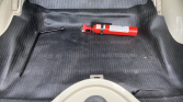Instrumentation includes a 150-mph speedometer, a 5k-rpm tachometer, a clock, and auxiliary gauges for fuel level and coolant temperature. The five-digit odometer shows under 500 miles, approximately 400 of which have been added by the seller. Total mileage is unknown.