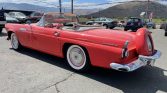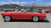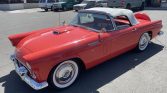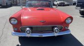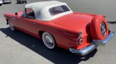 This 1956 Ford Thunderbird was acquired by the seller in 1997 and has been refinished in red over a two-tone red and white interior. Power comes from a 312ci V8 paired with a three-speed automatic transmission, and other equipment includes a white soft top, a Continental kit, steel wheels with covers, engine-turned interior trim, a tachometer, and a digital cassette stereo. The car was stored for a period of time, after which the seller had the carburetor…