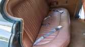 Cabin finishes include brown upholstery on the seats aLompanied by matching door panels and wood trim. A period radio is retained in the center stack, and a Sony CD stereo has been mounted under the dashboard. Further additions included the installation of an ignition kill switch, a Brantz rally meter, and a fire extinguisher mounted alongside the front passenger seat.