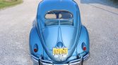 This 1956 Volkswagen Beetle is finished in Eismeer Blue Metallic over a two-tone gray interior and powered by a 2,387cc flat-four paired with a four-speed manual transmission. The car was acquired by the seller in 2007 and subsequently refurbished with work including a body-off repaint, refreshing the interior, and installation of a custom sound system with a Pioneer Bluetooth stereo, Porsche-style Fuchs wheels, a Porsche fan conversion, four-wheel disc brakes, a dual-outlet exhaust, and ISP instrumentation. Equipment…