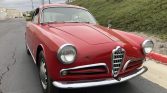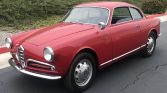Said to have been originally finished in white, the Bertone-styled bodywork was repainted its current shade of red some time ago. Exterior features include a driver’s side-view mirror, chrome bumpers, Quadrifoglio badging, and eyebrow-style front grilles.