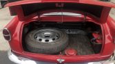 The 15” steel wheels feature polished covers and are wrapped in older tires that require replacement. The seller reports that the brake master cylinder and wheel cylinders have been replaced, and the brakes overhauled.