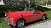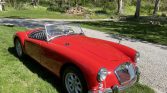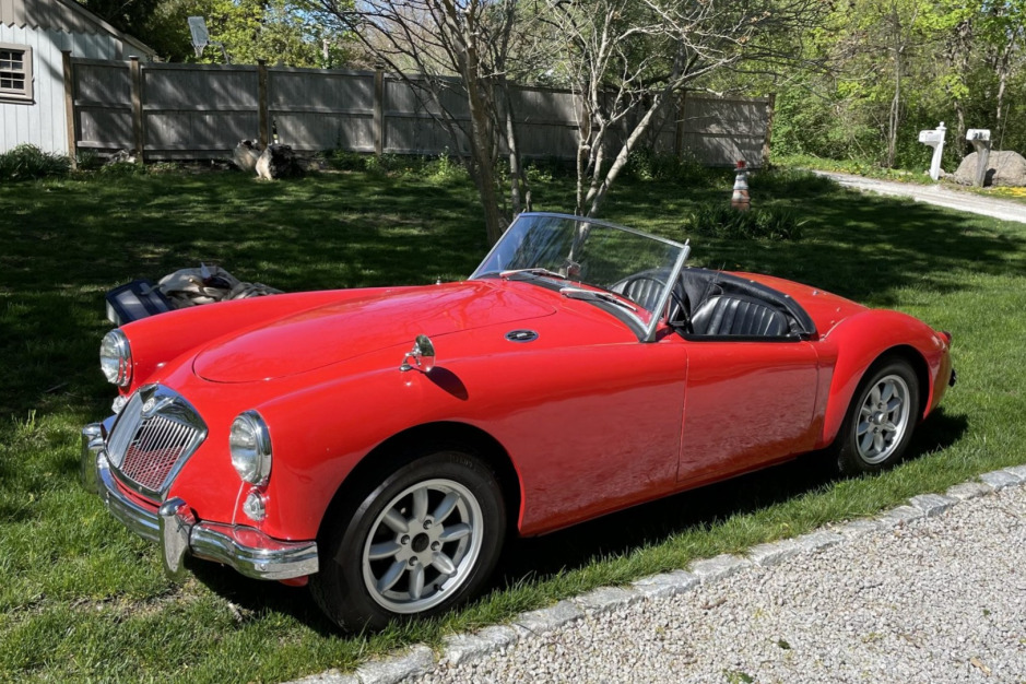 This 1957 MGA 1500 roadster was purchased by the seller’s father in 2001 and was acquired by the seller in 2008. Finished in red over black vinyl, it is powered by a 1.5-liter inline-four paired with a four-speed manual transmission. Equipment includes a black convertible top, chrome bumpers with overriders, and 15″ Minilite-style wheels. Maintenance during current ownership is said to have included routine oil changes and replacement of fuel system and rear brake components.