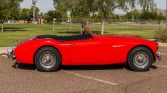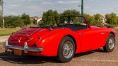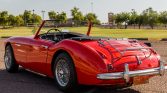 This 1958 Austin-Healey 100-6 is a four-seat BN4 roadster that was acquired by the seller in 1984 and subsequently refurbished between 2001 and 2004. The car is finished in red over black vinyl and is powered by a 2.6-liter inline-six paired with a four-speed manual gearbox with overdrive. Equipment includes a black soft top, tonneau cover, luggage rack, chrome bumpers, and wire wheels. Service in preparation for sale consisted of replacing seals, freeze plugs, and the thermostat…