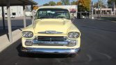This 1958 Chevrolet Apache is a Fleetside pickup that was built in Los Angeles, California, and spent time in Arizona where it was refurbished under previous ownership in 2013 before being acquired by the seller in 2020. The truck is finished in yellow over brown and cream upholstery and is powered by a 283ci V8 paired with a column-shifted three-speed manual transmission. Features include chrome front and rear bumpers, Fleetside badging, wood truck bed trim, an AM…