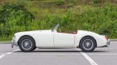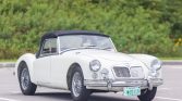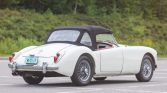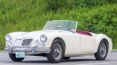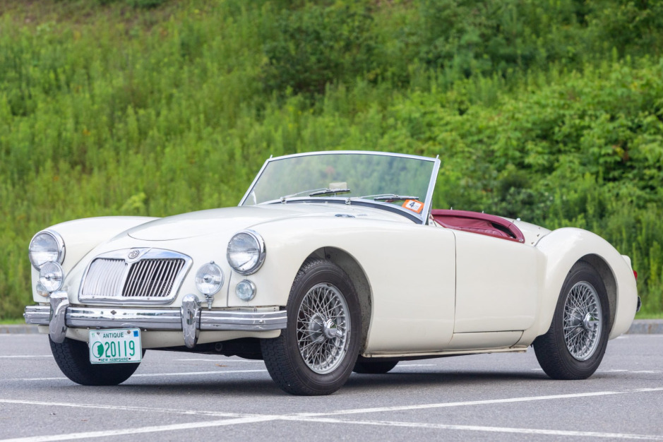 This 1959 MG MGA is a white-over-red convertible that was acquired by the seller out of Rhode Island in January 2015. Power is provided by a 1.6-liter inline-four equipped with dual SU carburetors and mated to a four-speed manual transmission, and additional equipment includes a black soft top, Lucas driving lights, an electronic ignition, front disc brakes, 15″ wire wheels, and a heater. During current ownership the battery and battery cables were replaced, and an oil change was completed in May 2021.
