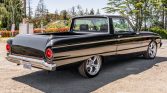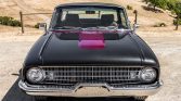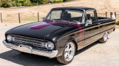 This 1960 Ford Falcon Ranchero is powered by a 302ci V8 with electronic fuel injection paired with a four-speed automatic transmission and has been refinished in dark metallic gray over custom gray leather. Features include chrome 17″ Rev wheels, four-wheel power disc brakes, Mustang II front suspension, power steering, air conditioning, power aLessories, black walnut wood bed inserts, and custom behind-seat storage.