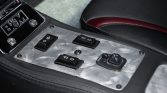 The cabin features custom gray and red upholstery with matching painted surfaces. Interior equipment includes chrome and machined components as well as a custom center console with power mirror, lock, and window switches, air conditioning, a Dual USB/MP3 and CD stereo, and Dual cabin speakers in molded kick-panel enclosures. Storage compartments are mounted behind the rear seats.