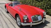 This 1960 MG MGA 1600 Roadster is finished in red over black vinyl upholstery and is powered by a 1.6-liter inline-four paired with a four-speed manual transmission. Features include a black soft top, a chrome luggage rack, 15″ chrome-finished wire wheels, fender-mounted side-view mirrors, and an oversized aftermarket radiator. The car is said to have been refurbished during previous ownership and was acquired in June 2019 by the seller. Work has since included installing a battery cut-off…