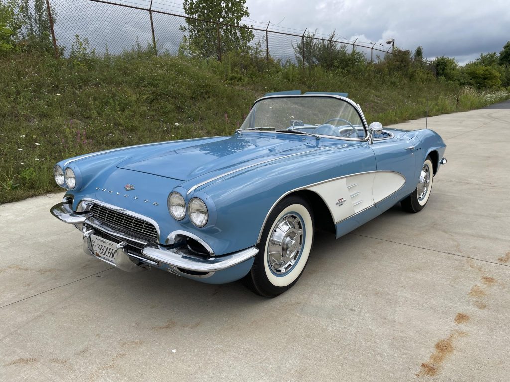 The C1 was updated with styling tweaks for the 1961 model year, and the fiberglass bodywork of this example is finished in Jewel…