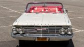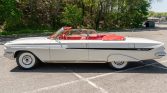 This 1961 Chevrolet Impala convertible is said to have undergone refurbishment predating the previous owner’s purchase of the car in 2001, and it was acquired by the seller in 2018. The car is finished in white over red vinyl and features a power-operated soft top, power steering, windshield washers, and a push-button AM radio. The 283ci V8 is mated to a two-speed automatic transmission, and service during the past year included rebuilding the carburetor, performing a tune-up, and changing the oil.